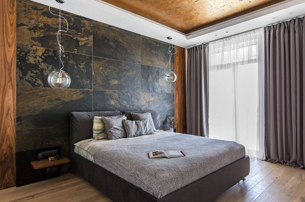 Спальня в деревенском стиле — это интерьер с теплотой, гармонией и минимализмом. Вы можете легко отказаться от дизайнерской мебели и богатых украшений. Главенствовать должна древесина и нейтральная палитра цветов — белая, бежевая, серая. Кроме того, мебель следует украсить региональными узорами в народном стиле. Добавьте сундук с чугунной фурнитурой или прикроватные тумбочки из необработанной древесины.