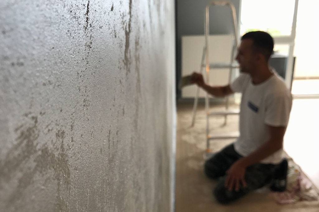 Оригинальные визуальные эффекты обеспечиваются прозрачными красками и лаками, имитирующими трещины, а также красками, придающими особый вид, такими как необработанный бетон. Добавим, что моющиеся краски, стойкие к внешним факторам, могут быть идеальной отделкой для прихожей, кухни или ванной комнаты.