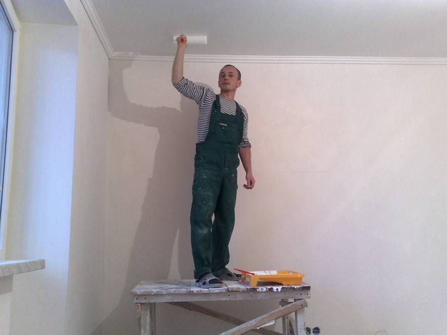 Чтобы обновить потолок, покрашенный водоэмульсионной краской, потребуется значительно больше времени на проведение подготовительных работ. Это связано с тем, что сам процесс удаления предыдущей покраски – довольно трудоемкий, так как слои старой краски практически не растворяются в воде, а потому соскабливать их в полной мере с потолка не предоставляется возможным. Чаще всего эта работа сводится к удалению шпателем участков отслоившейся краски.