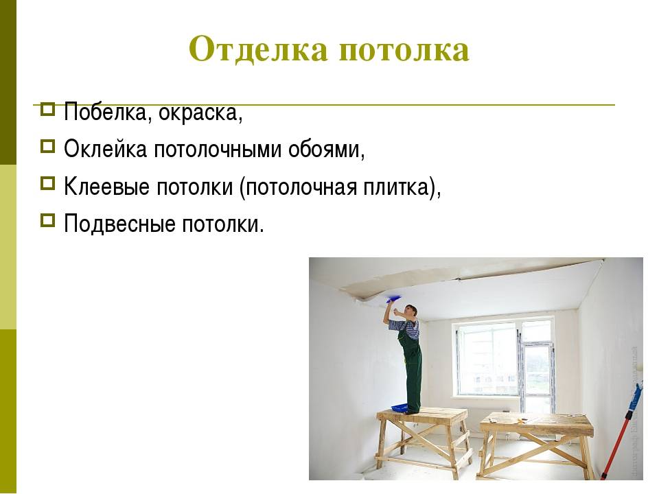 Перед началом работ нужно выбрать не только вариант отделки, но и оценить ровность потолочного покрытия. Например, при формировании подвесных систем, базовую поверхность не придется выравнивать, а вот перед поклейкой обоев нужно тщательно заделать дефекты. Также подвесные, натяжные системы скрывают коммуникации, выступы, чего не скажешь о покраске, побелке. Каждый тип облицовки имеет свои достоинства, недостатки.