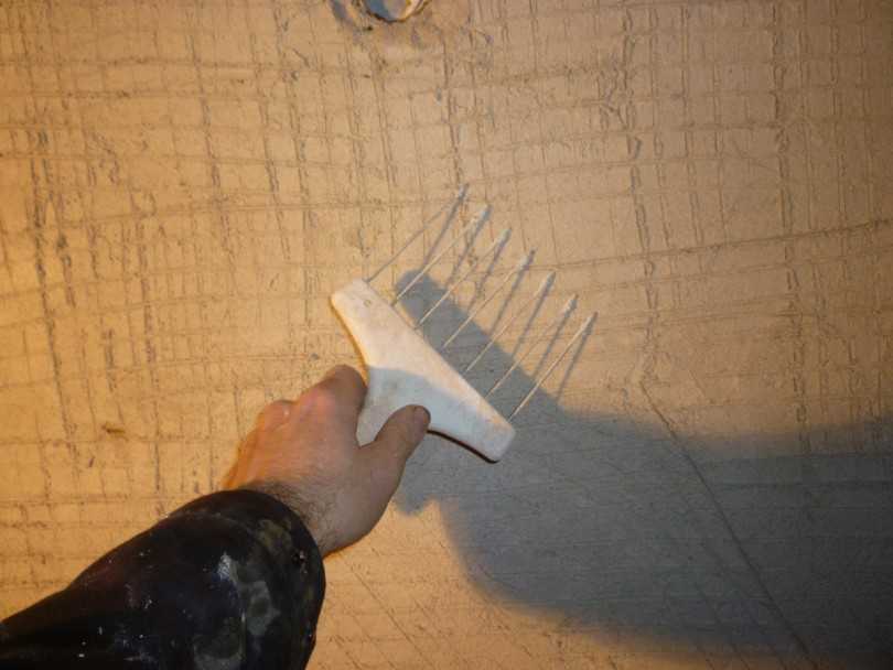 Метод штриховки. Здесь мы задаем рельеф на свежей еще мягкой штукатурке. Поверхность обрабатывается металлической щеткой, потом оставляется ровно на сутки для высыхания. После чего шпателем удаляются остатки смеси.