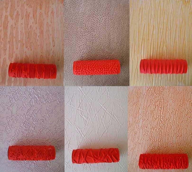 - валиком с нанесенным узором — этот способ прост в реализации и позволяет быстро получить эффектное фактурное покрытие;