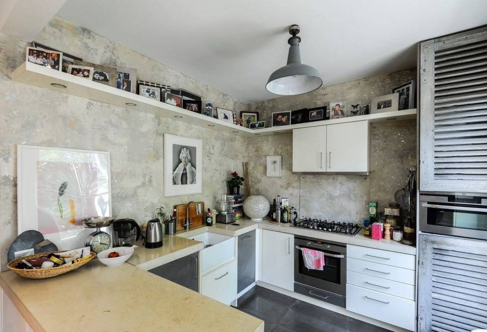 Кухня часто упускается из виду, как место для демонстрации произведений искусства и гобеленов, но глухая стена в ней станет идеальным местом для оформления вышеуказанными элементами интерьера, которые обеспечат элегантный вид и красоту. Такую стену целесообразно оформить фотографиями или детскими рисунками.