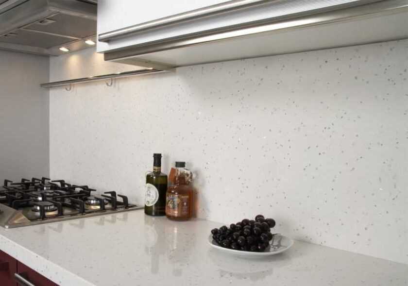 «Благодаря влагостойкости, стойкости к изменению температуры, к воздействию химических чистящих средств, попаданию жира и пара, плиты из стекла и нержавеющая сталь будут отличным вариантом для отделки стен в рабочей зоне кухни»