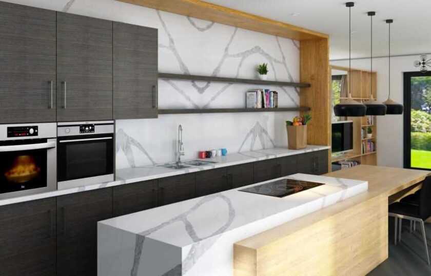 Сочетания дерева и искусственных поверхностей, имитирующих зелень, одно из современных направлений, которое развивают дизайнеры. Именно экологическая кухня способствует здоровому образу жизни и питанию;