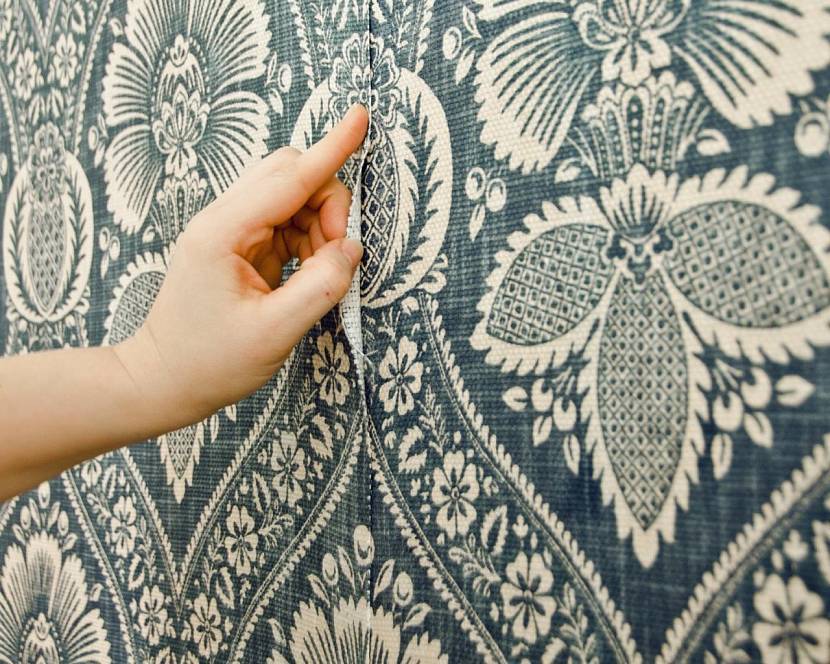 - Если на обычных обоях швы на стыках – это дело привычное, то на тканном материале их наличие не желательно. Поэтому ширина полотна должна быть равна высоте потолка. Это позволит исключить появление швов.