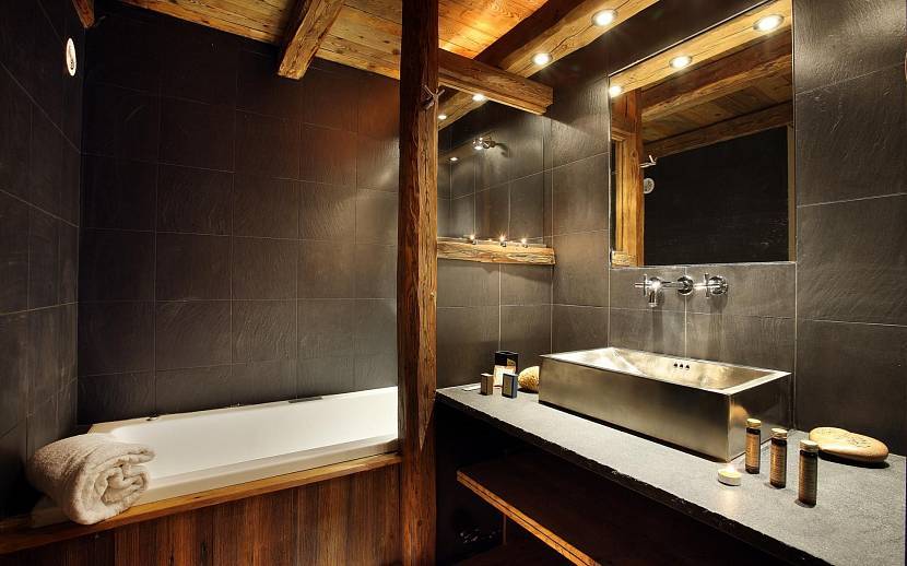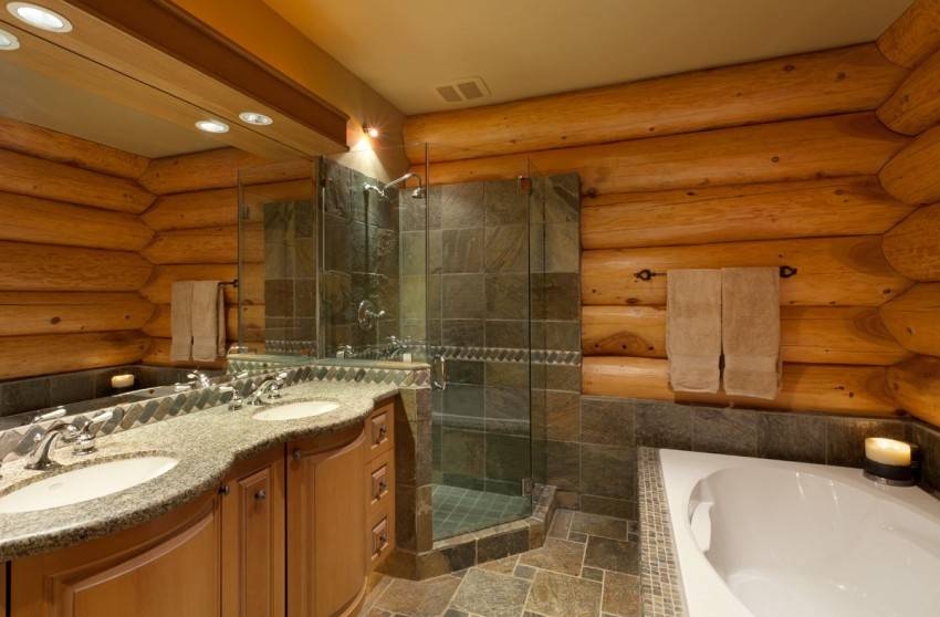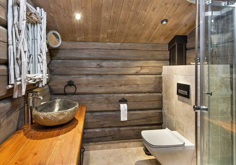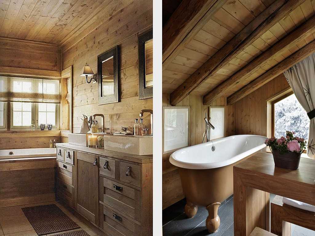 Интерьер ванной в деревянном домеИсточник kb.blackbookvillas.com/