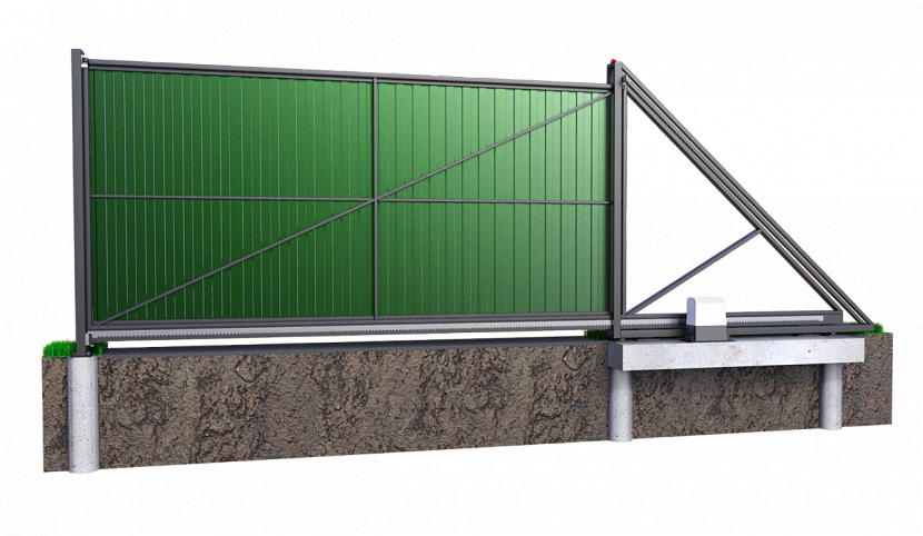 Кроме того, консольные ворота очень плотно, по сравнению с другими типами откатных ворот, прилегают к забору, не оставляя даже щелочки для чересчур любопытных. И еще один важный момент – проще всего установить автоматику именно на консольные ворота. Из недостатков следует отметить очень непростую для монтажа, сложную конструкцию ворот и, кроме того, для установки такого типа ворот забор должен иметь свободный участок, по длине в 1,5 раза превышающий длину ворот.
