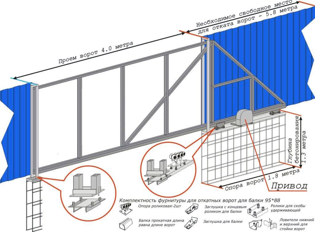 Откатные ворота своими руками: фотоотчет с пояснениями
