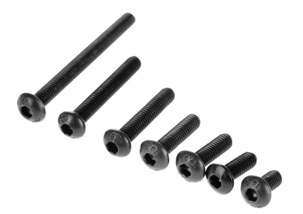 - Сферические под шестигранник. Они могут выдерживать большое усилие во время затяжки, благодаря чему скрепляемые детали надежно и плотно соединяются. Винты с такими головками закручиваются с помощью шестигранного штифтового ключа.
