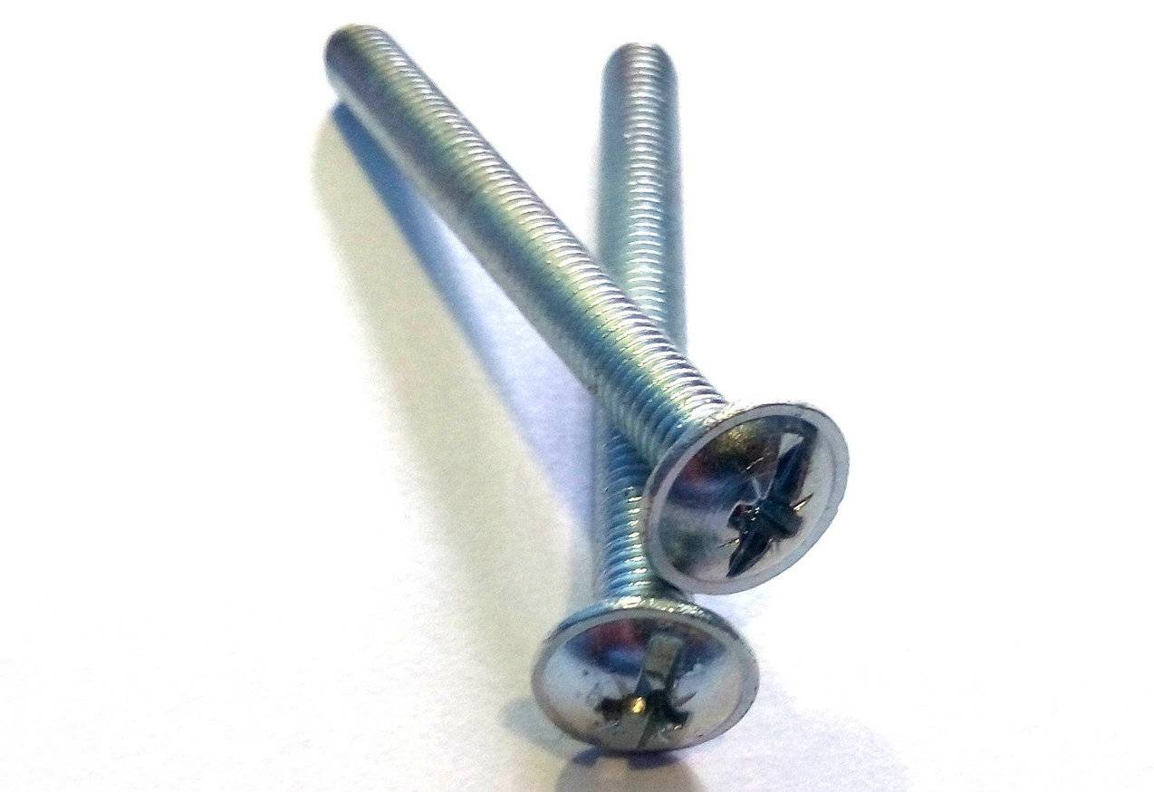 - Плоские под крестовую отвертку. Позволяют создавать разборные соединения внутри и снаружи мебели. Коническая головка винта погружается в материал на одном уровне с ним, поэтому выглядит эстетично. Закручивается крестовой отверткой или шуруповертом с крестовой битой.