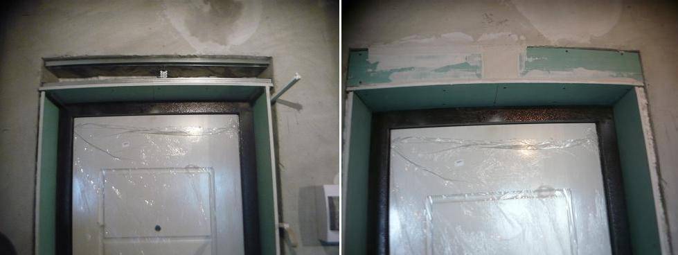 Когда дверной проем намного выше новой двери, то наиболее актуальным будет наращивание гипсокартона