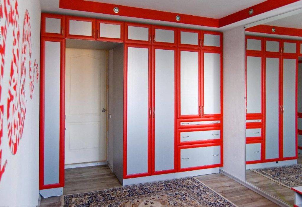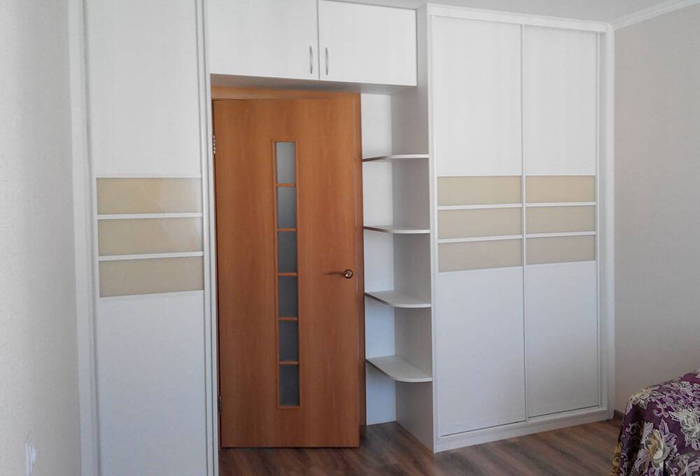 Шкаф вокруг двери оснащают одним из вариантов дверных систем.