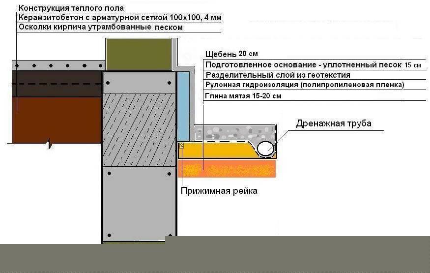 В зависимости от грунта на участке и назначения здания использоваться могут разные материалы и структура слоев, но есть некоторые моменты, которые присутствуют всегда: