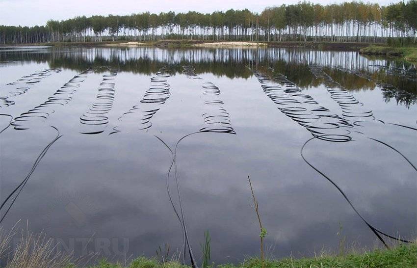 Надо заметить, что чем глубже расположен в водоеме коллектор насоса, тем стабильнее будет температура. Для получения мощности системы в 10КВт, необходимо около 300 метров трубопровода.