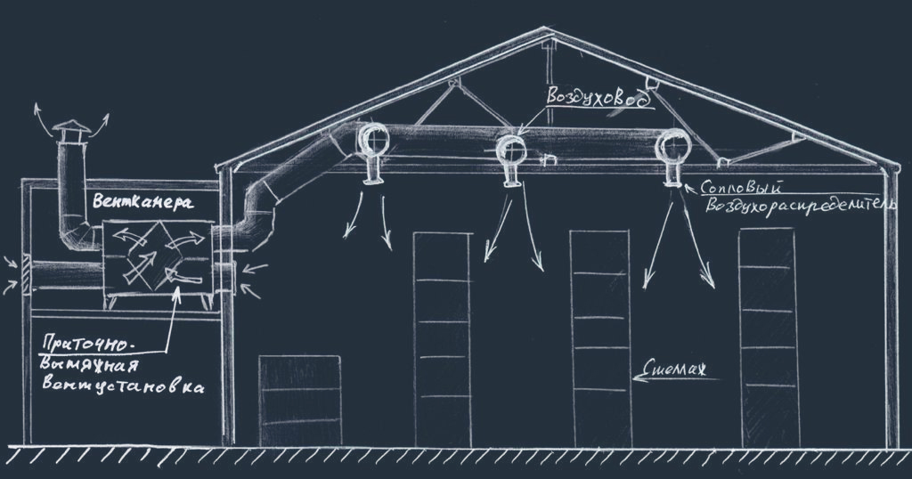 Воздух подается в помещение через приточно-вытяжную вентиляцию. Рабочим параметром является не только температура, но и кратность воздухообмена.