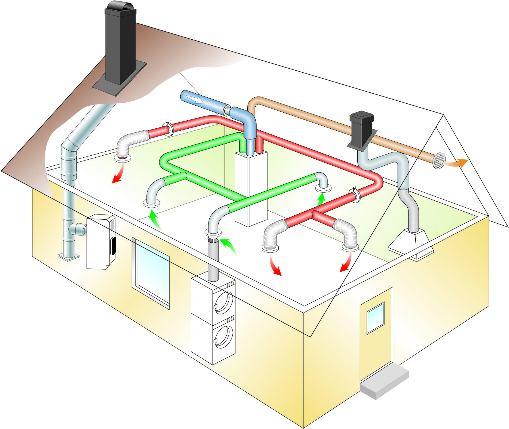 Этот подвид наиболее пригоден для жилых домов. Часть нагретого воздуха циркулирует внутри здания, а часть заменяется на свежий воздух.