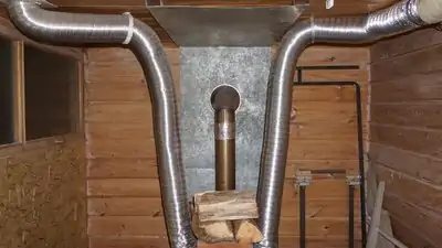 Бульеран – удивительная печка, работающая на принципе газогенерации. В нее снизу идут ненагретые массы, а сверху выходят теплые. В этом случае к такой печи подключают алюминиевые или жестяные патрубки, которые распространяют тепло по помещениям. Это еще один вариант системы воздушного отопления от печи для частного дома.