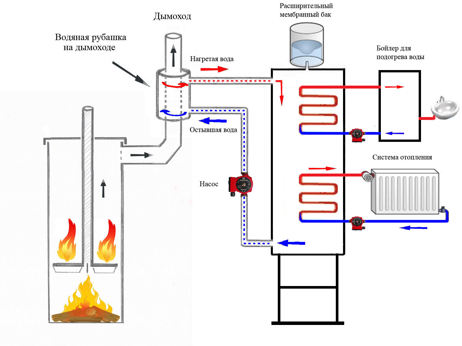 - Установить в кирпичной печке систему трубчатых регистров из стальных труб;