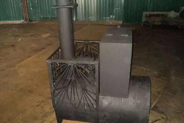 Фото 3. Самодельная горизонтальная банная печь с баком для воды и отсеком для камней.