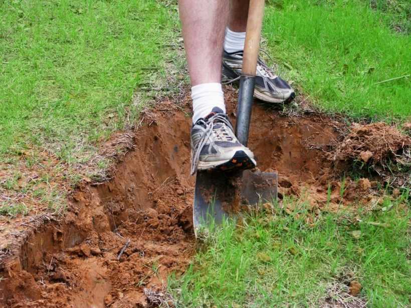 - Закопать ямы, воспользовавшись снятой землёй. Излишки грунта вывезти. При нехватке плодородной земли закупить её.