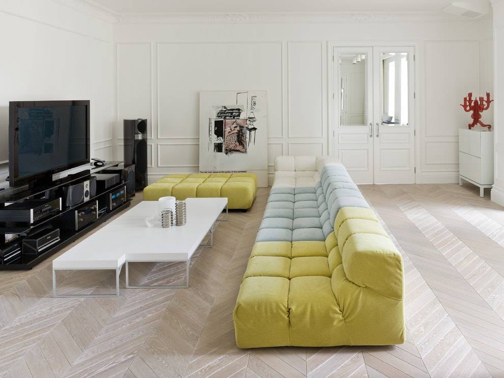 Диван с оттоманкой в интерьере: модульный тип мебели