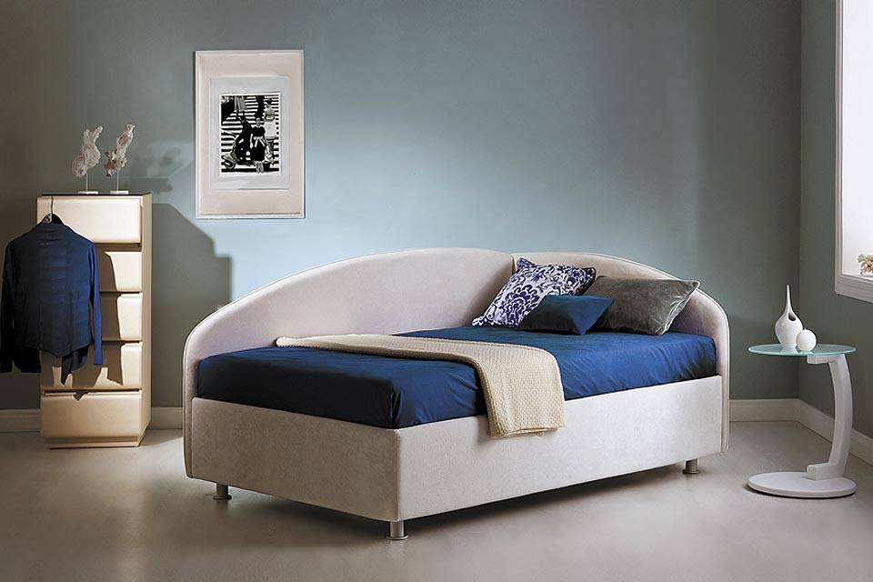 - Односпальная тахта. Она идеально вписывается в небольшие помещения. Многие изделия оснащаются выдвижными ящиками. Возможные габариты варьируются от 80 × 90 до 90 × 200 см.