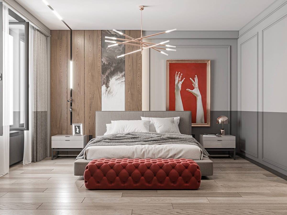Традиционный декор мягких панелей идеально сочетается с интерьером спальни в современном стиле