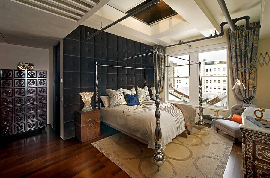 Мягкая панель смягчает образ индустриально-эклектичной спальни