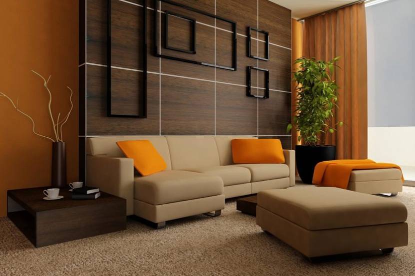 Одну из стен гостиной комнаты можно сделать рельефной с помощью специальных плит, которые можно окрасить в тон интерьеру.