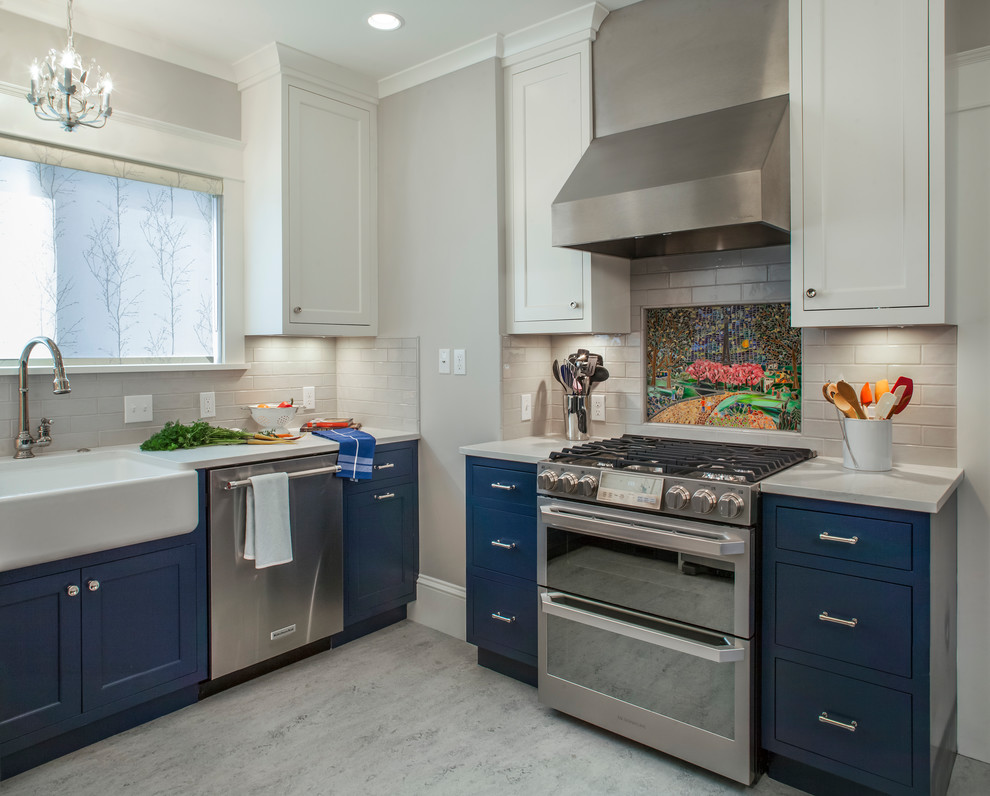Уникальное авторское оформление фартука кухни: панно из осколков плитки