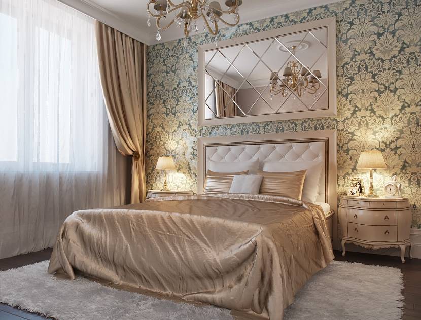 Зеркальная композиция над кроватью станет идеальным дополнением роскошного классического стиля.