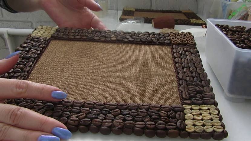 Обеденную зону выделит композиция из кофейных зерен. Как раз то, что нужно для бодрящего начала дня.