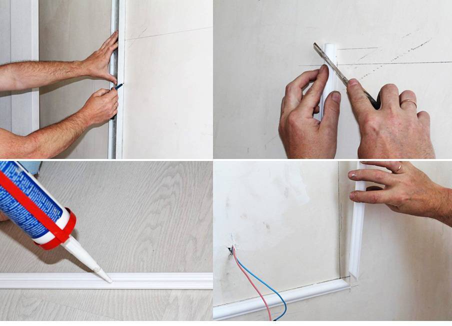 - нарезать рейки и приклеить их в нужных местах на стену;