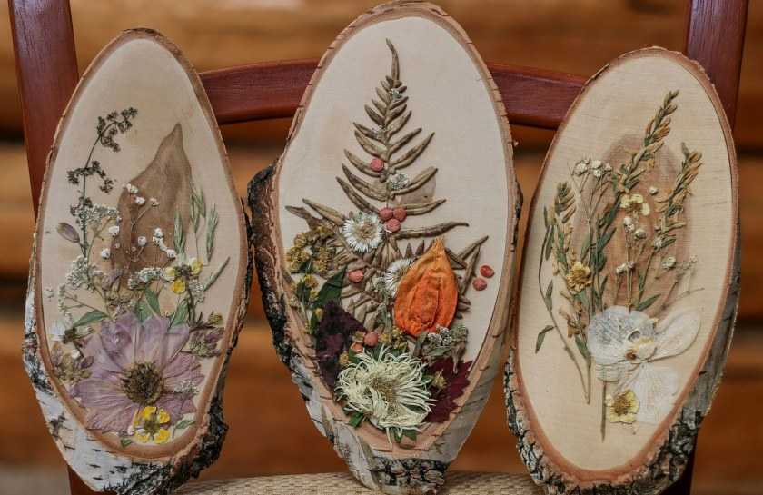 Интересные композиции получаются из «пятачков», вырезанных со ствола дерева. Из них можно выкладывать абсолютно любые картины: цветы, сердечки, звёздочки. Или размещать их в хаотичном порядке, что тоже смотрится довольно оригинально. Для глянцевого эффекта дерево можно покрыть лаком.