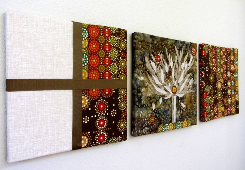 Лоскутные элементы, обладают особой притягательностью и энергетической насыщенностью. Такое украшение стен, будет уместно, как для квартиры, так и для дачи или загородного дома. Панно из лоскутков ткани, добавляет обстановке красочности и полностью изменяет ее характер.