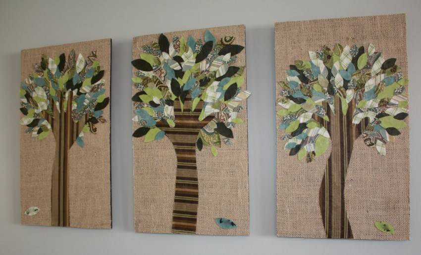 Это только на первый взгляд кажется, что панно из ткани или листьев изготавливается легко и просто. На самом деле на соответствующий процесс уходит много времени, т.к. под каждый фрагмент приходится подбирать материал нужного цвета. Гораздо проще соблюсти всего два цвета, используя:
