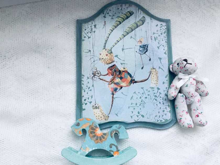 Разнообразные вырезанные изображения, наклеенные на поверхность и покрытые несколькими слоями лака, прекрасно вписываются в интерьер и гармонично дополняют его.