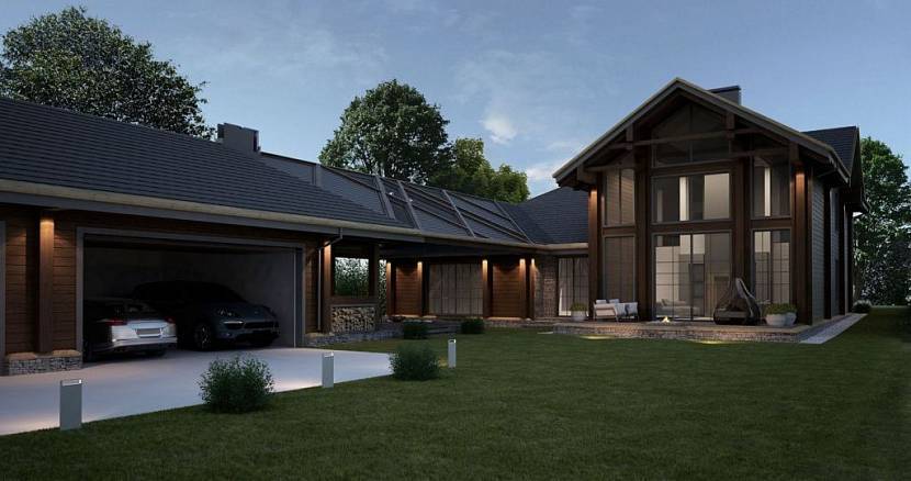 Типовой дом из клеёного бруса с панорамными окнамиИсточник way-project.com