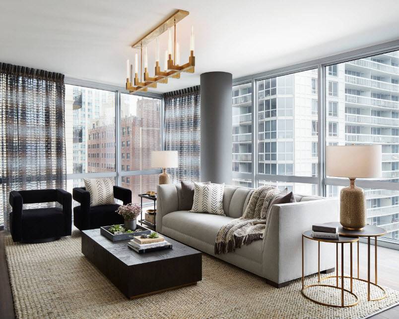 Лаконичный вариант дизайна в квартире с увеличенными окнами