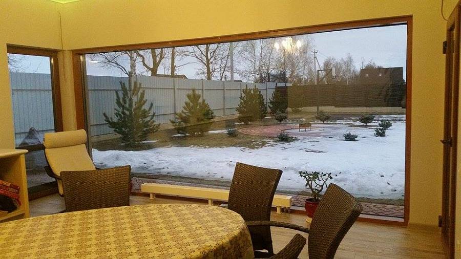 - Высокие теплопотери в холодное время года. Панорамное остекление плохо справляется с сохранением тепла в здании. Владельцам, установившим большие окна в домах на открытой местности или в квартирах на верхних этажах потребуется применение мощной отопительной системы для поддержания комфортной температуры воздуха в помещении.
