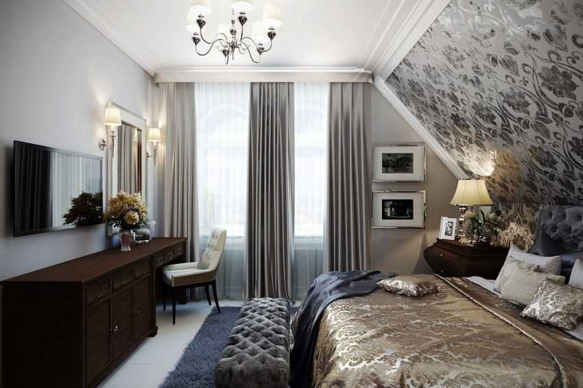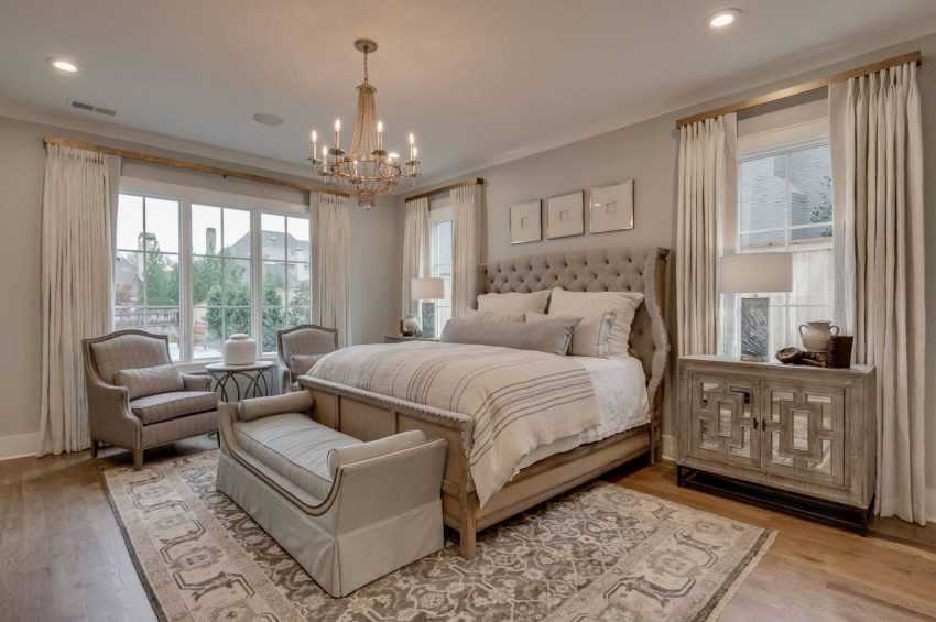 Обычно в классическом стиле оформляются спальни в полногабаритных квартирах, с высокими потолками, с двумя или тремя оконными проемами или с эркерами. Рамы и подоконники в идеале должны быть деревянными, но ламинированный под дерево ПВХ тоже смотрится очень стильно.