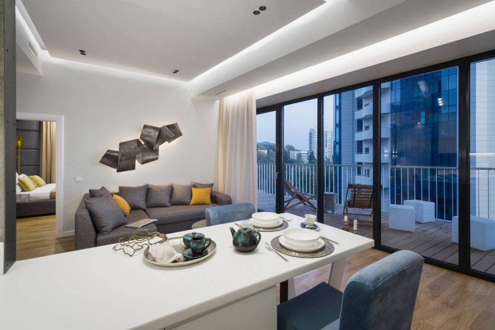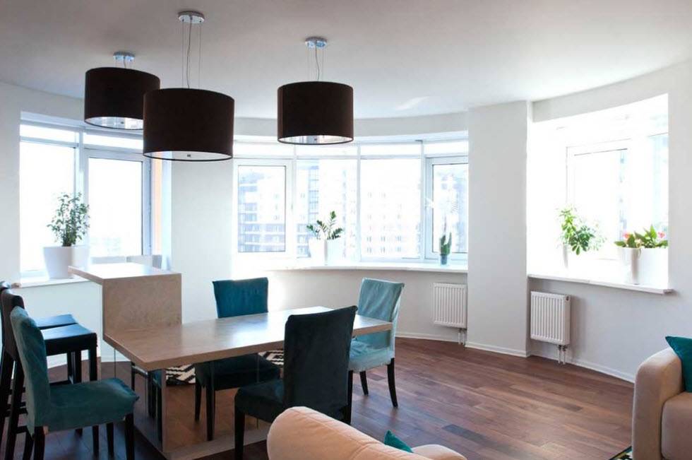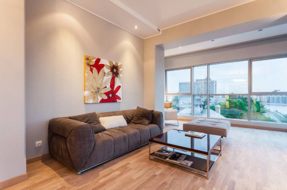 Установка панорамных окон – это не только смелое, привлекательное и современное решение, но порой и идея, воплощение которой невозможно из-за конструкции многоэтажного дома. Если в квартире есть лоджия, то объединить ее с жилой комнатой не трудно, ведь парапет не служит несущей конструкцией. Получить разрешение у местных органов на снос парапета и переоборудование лоджии не трудно, в результате чего бетонная коробка послужит базой для панорамного остекления.