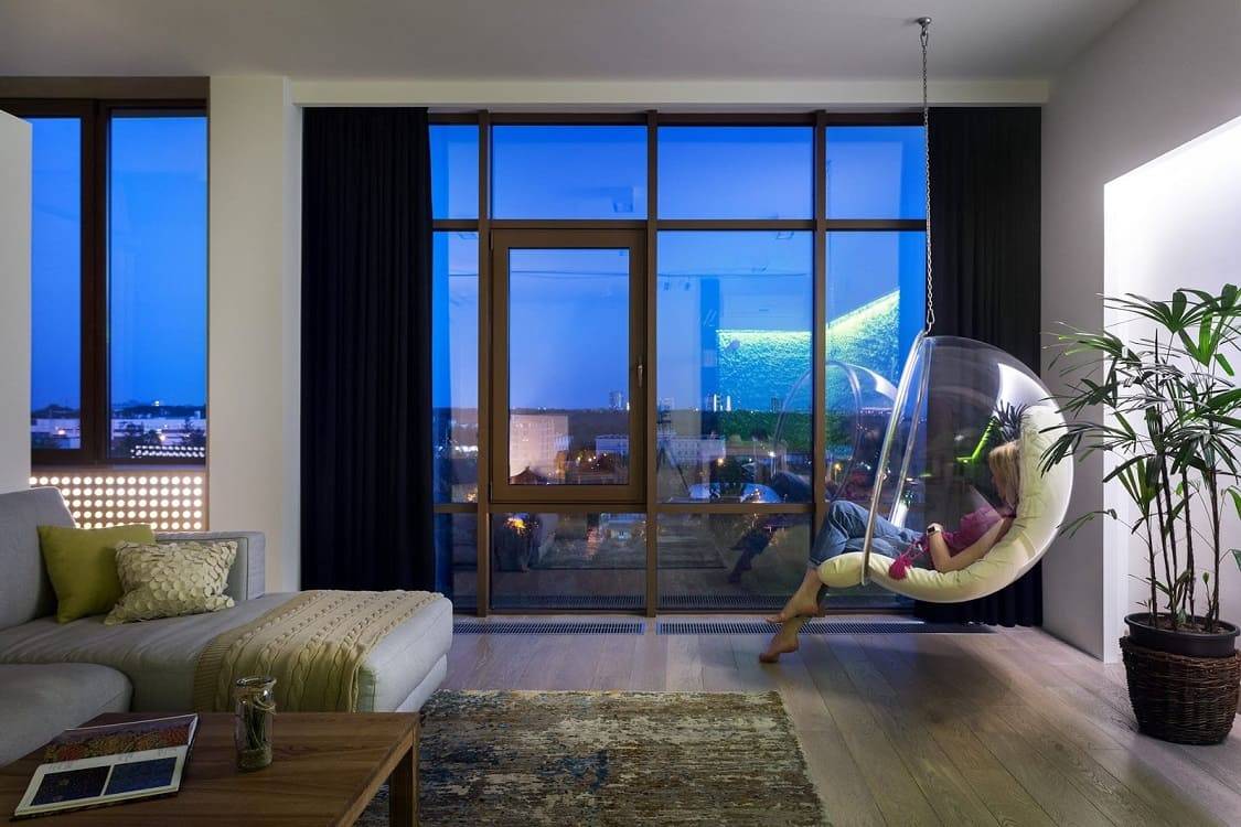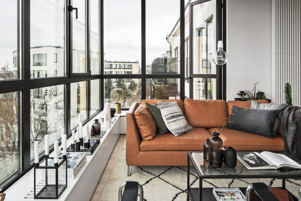 Главная особенность — единение домашней атмосферы с природой или улицей. Такое решение будет выигрышно смотреться в частном доме или в квартире небоскреба.