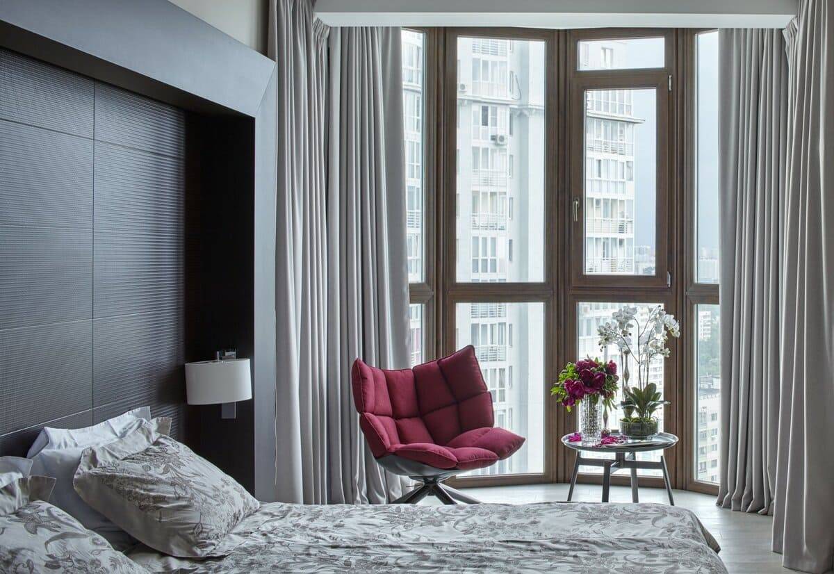 В таких спальнях можно создать для себя настоящее «царство сна», открыть прекрасный панорамный вид. Однако следует сретушировать и недостатки, например, возможное наличие сквозняков. Кроме того, окна могут «поглотить» значительную часть жилого пространства.