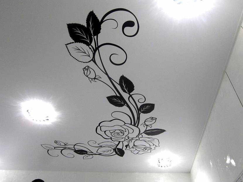 Цветочные мотивы на потолкеИсточник idealpotolok34.ru/