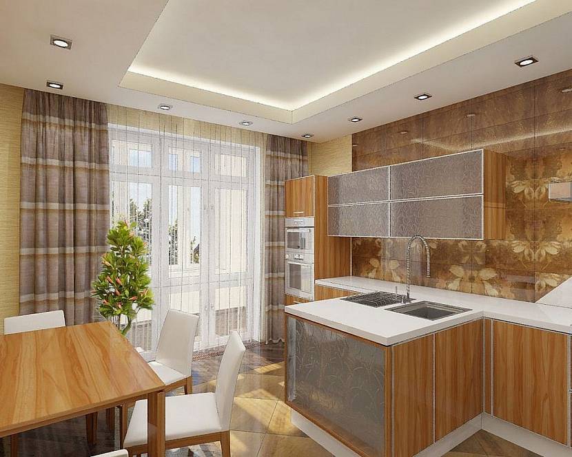 Потолок из гипсокартона в дизайне кухниИсточник interstel.ru