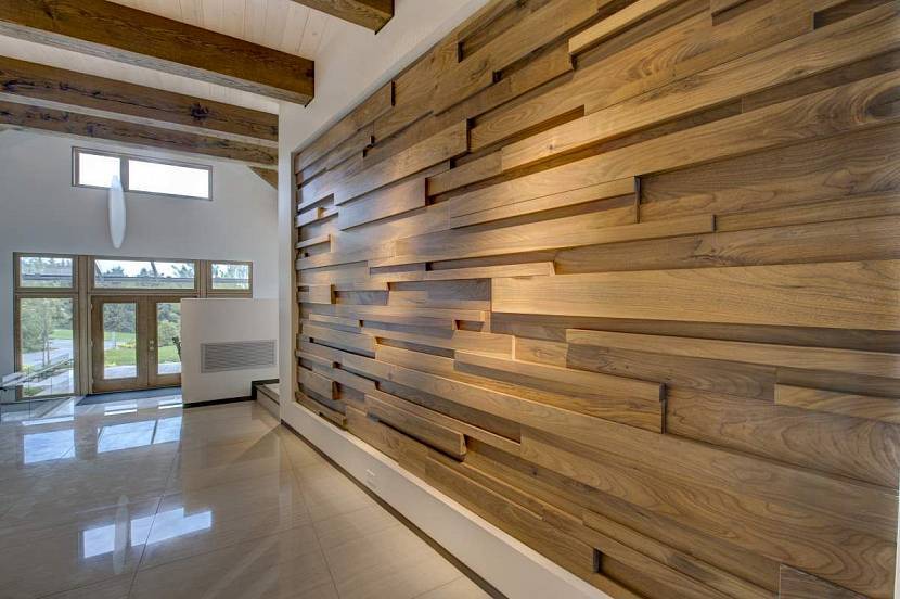 Так как есть технология укладки паркета на стену, то производители стали выпускать именно такие доски. Они могут иметь интересное нанесение на поверхности или даже 3D-эффект. Если при этом в помещении сочетать все направления и делать это из дерева, то получается полная гармония для проживания.