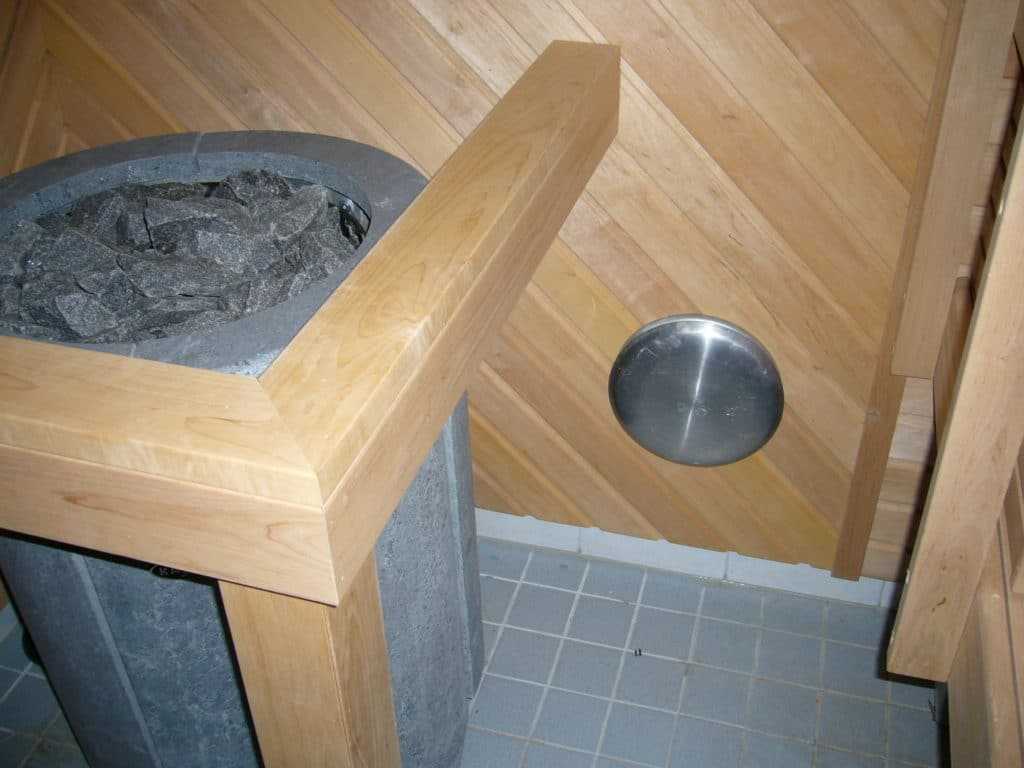 - Направляла генерированный пар в каменку, чтобы он, повторно ударившись о камни или дно, измельчился ещё больше и дошёл таким образом до идеальной кондиции. В этом случае тепловая энергия камней тратится не на парообразование, а только на догрев пара, поэтому они остывают совсем чуть-чуть.