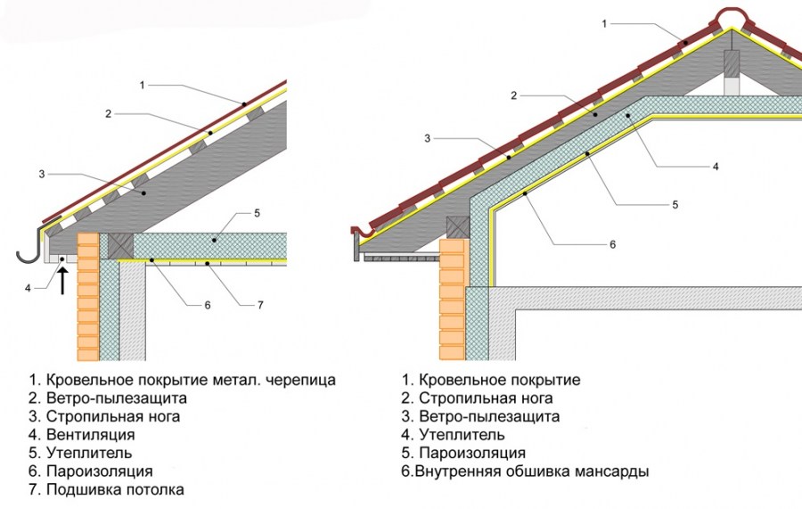 Место монтажа пароизоляции в кровельном пироге теплой и холодной кровли